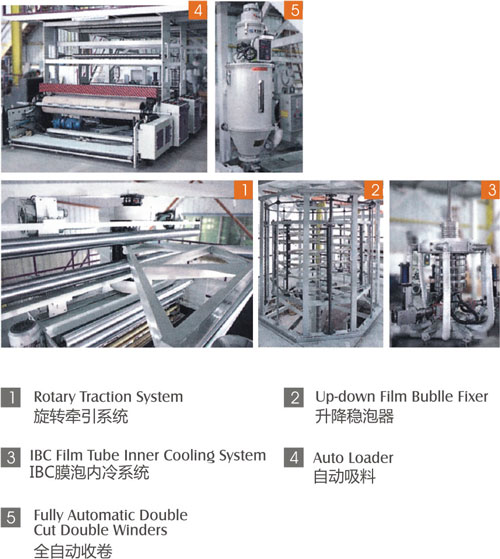 GHSJ-3L1600/3L2000/3L2600 三至五層共擠薄膜吹膜機(jī)組 (IBC 膜泡內(nèi)冷型)